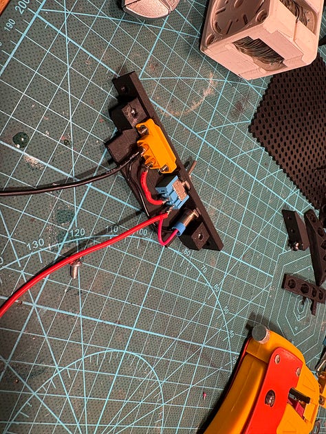 DC motor - this unit is used to test dc motors with quadrature encoder, I think that standard yellow motor with hall sensors is enough, it proved tedious to test free spinning motors, so as a form of “load” I like to connect same motor in tandem to slow the main one down
