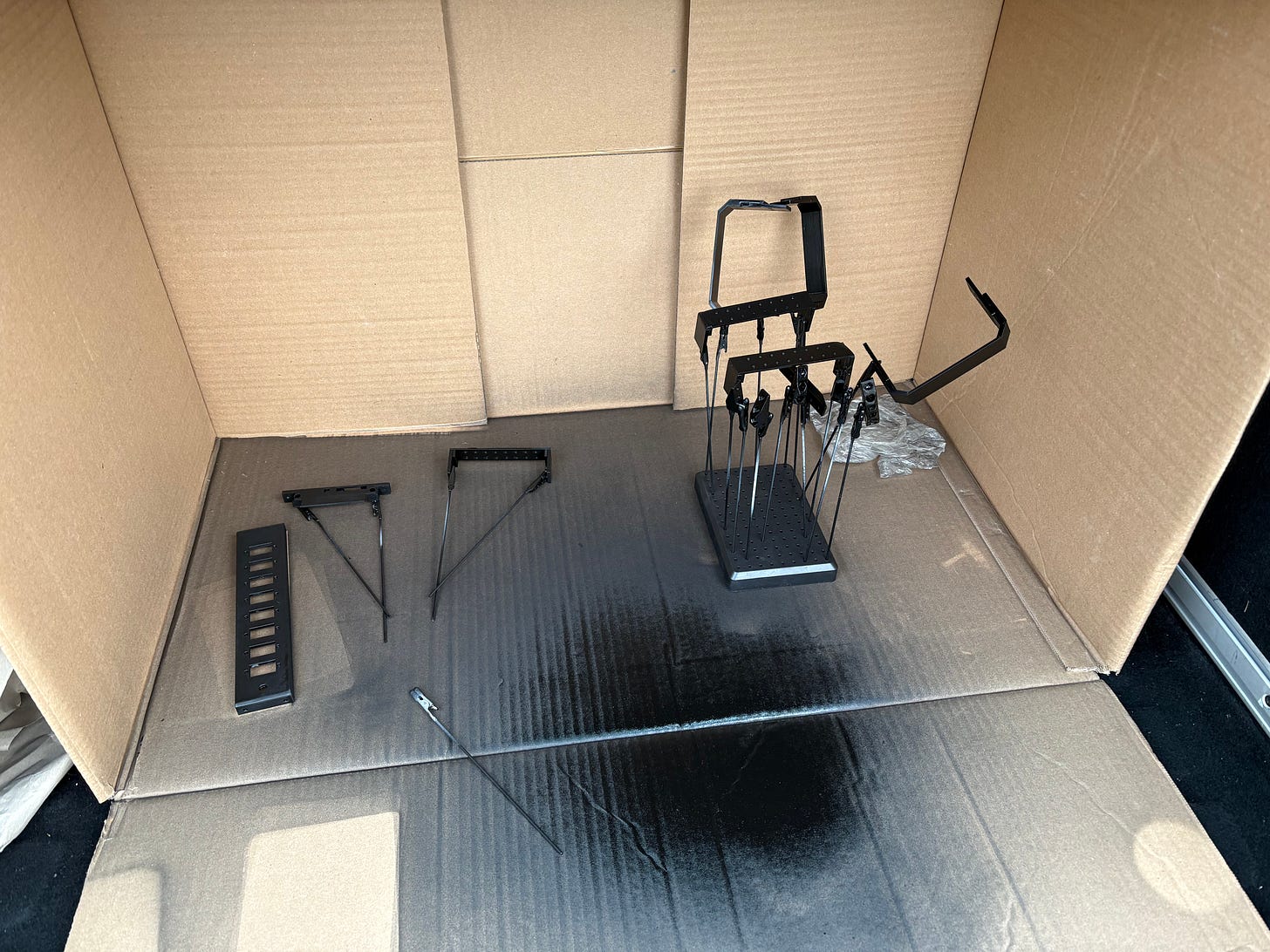 The idea was that the parts, spray can, and air inside the car will get to warm temperature. Then I just stopped at parking lot and quickly sprayed the parts in the back of the car. The enclosure of the box and the car limited air movement so no cold breeze could get in the way.