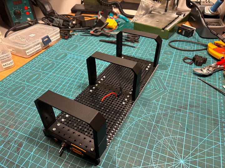 The Unit will be sitting on two rails made out of 10x10 alu profiles (cheap and easy to acquire). As you can see I actually assembled this wrong in previous steps, all that was necessary was just to re-screw it.